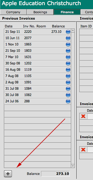 2. Go to their Finance section and click on the plus (+) button in the bottom left hand corner of the screen under the invoices list.